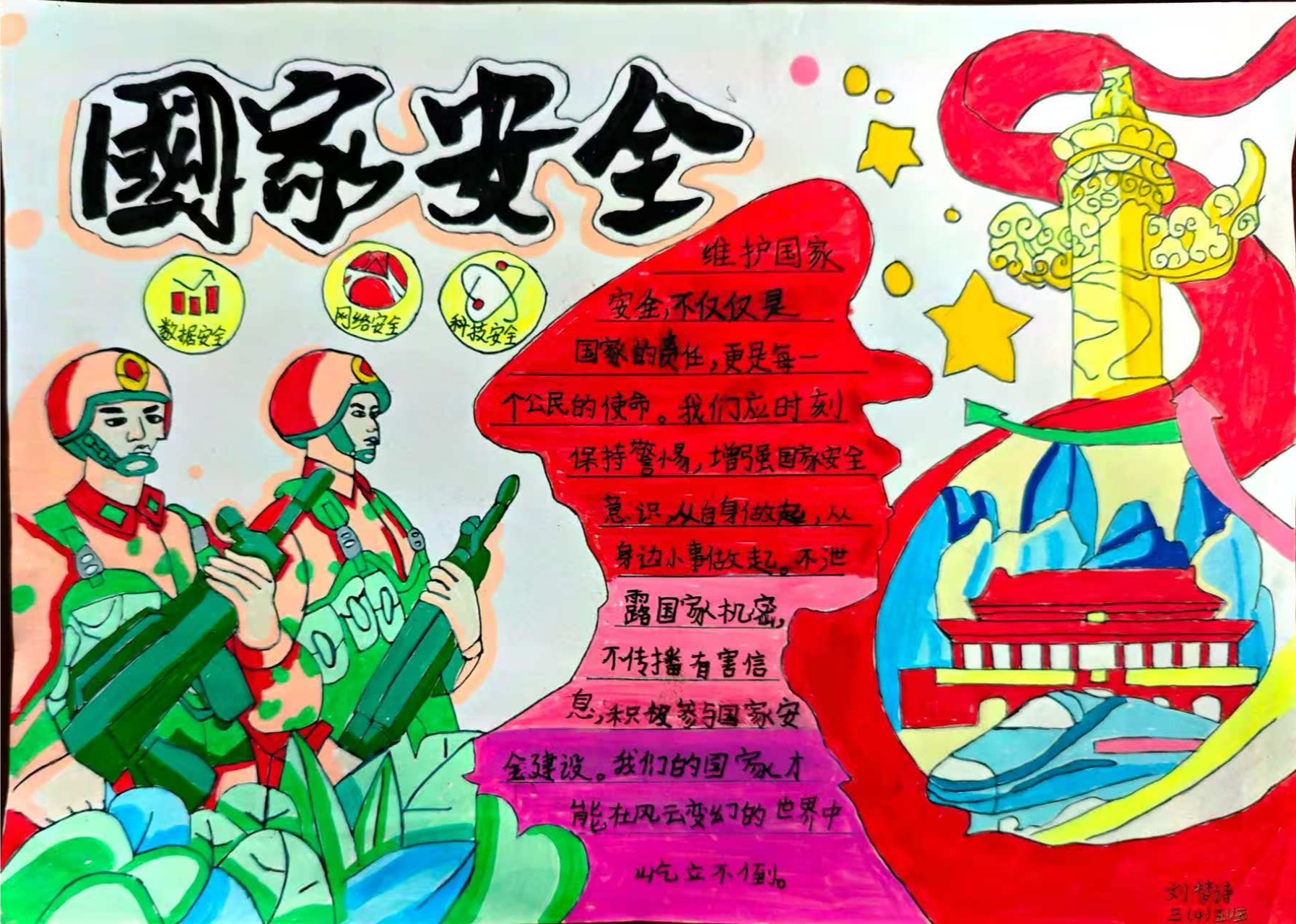 互动环节中,学生们围绕“青少年能为国家安全做什么”踊跃发言,通过知识问答、情景模拟等巩固学习成效。同时,学校同步开展国家安全主题手抄报创作评比,学生们将安全知识与绘画、书法相结合,创作出一批主题鲜明、形式新颖的作品,优秀作品在校园宣传栏集中展示,营造了浓厚的安全教育氛围。