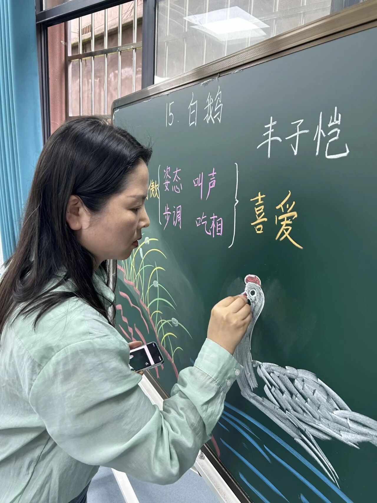 语文教师注重文意梳理与意境营造,板书结构清晰、文韵十足,配以简笔画还原课文场景,既突出文本主旨,又彰显文学美感;数学教师强调逻辑严谨与条理清晰,通过规范书写、公式推导与图形示意,将抽象知识直观化、重难点明朗化,尽显学科严谨性;英语教师则突出趣味性与实用性,以核心句型为主线,搭配生动简笔画与鲜明色彩,让词汇、句型更易理解记忆,贴合小学生认知特点。