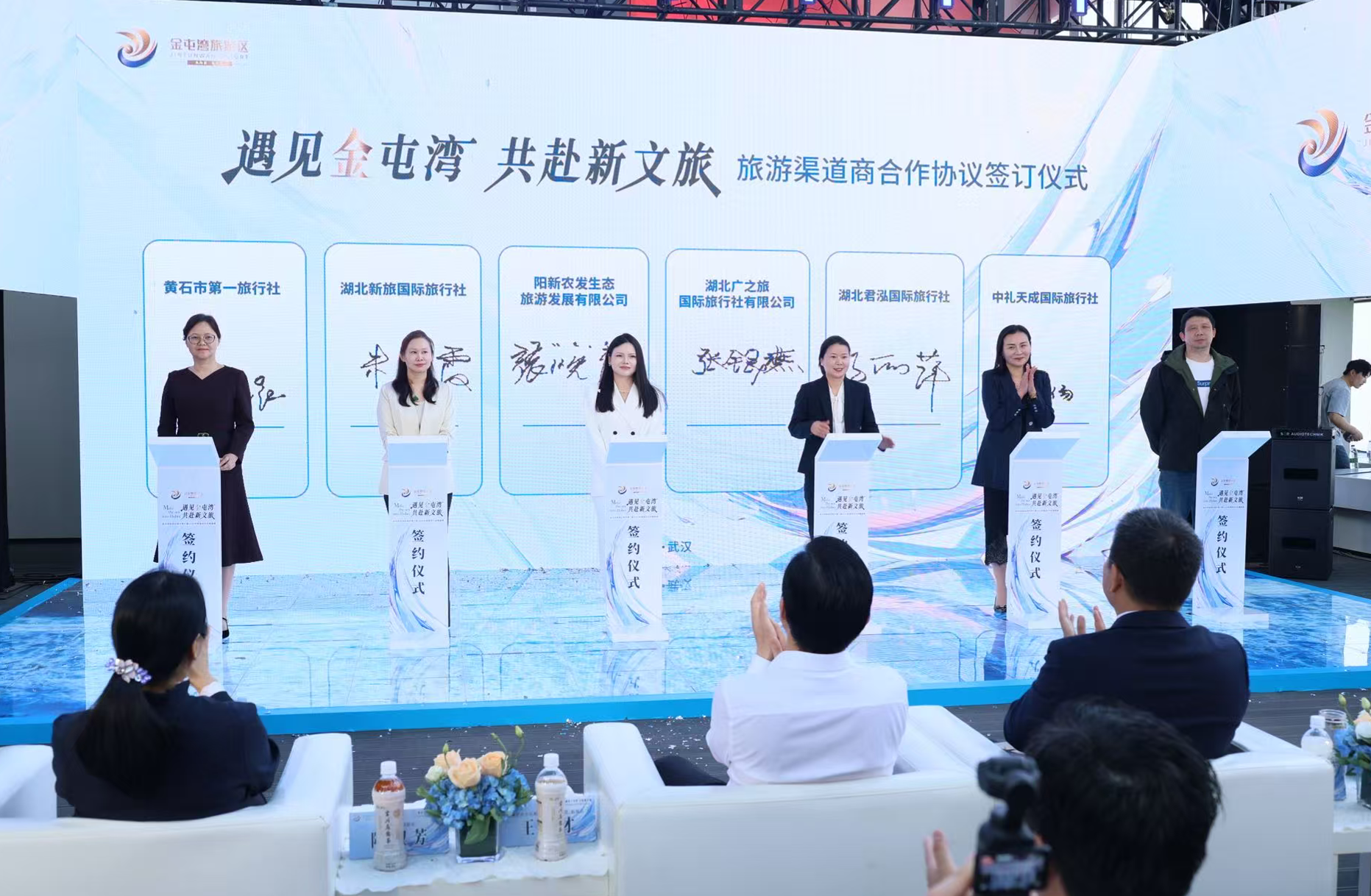在全体嘉宾见证下,金屯湾旅游区与多家重点旅行社现场签订战略合作协议,标志着景区渠道合作布局正式拉开帷幕。各方将通过资源共享、优势互补,推动景区产品走进千家万户,实现政企、渠道、市场的多方共赢。