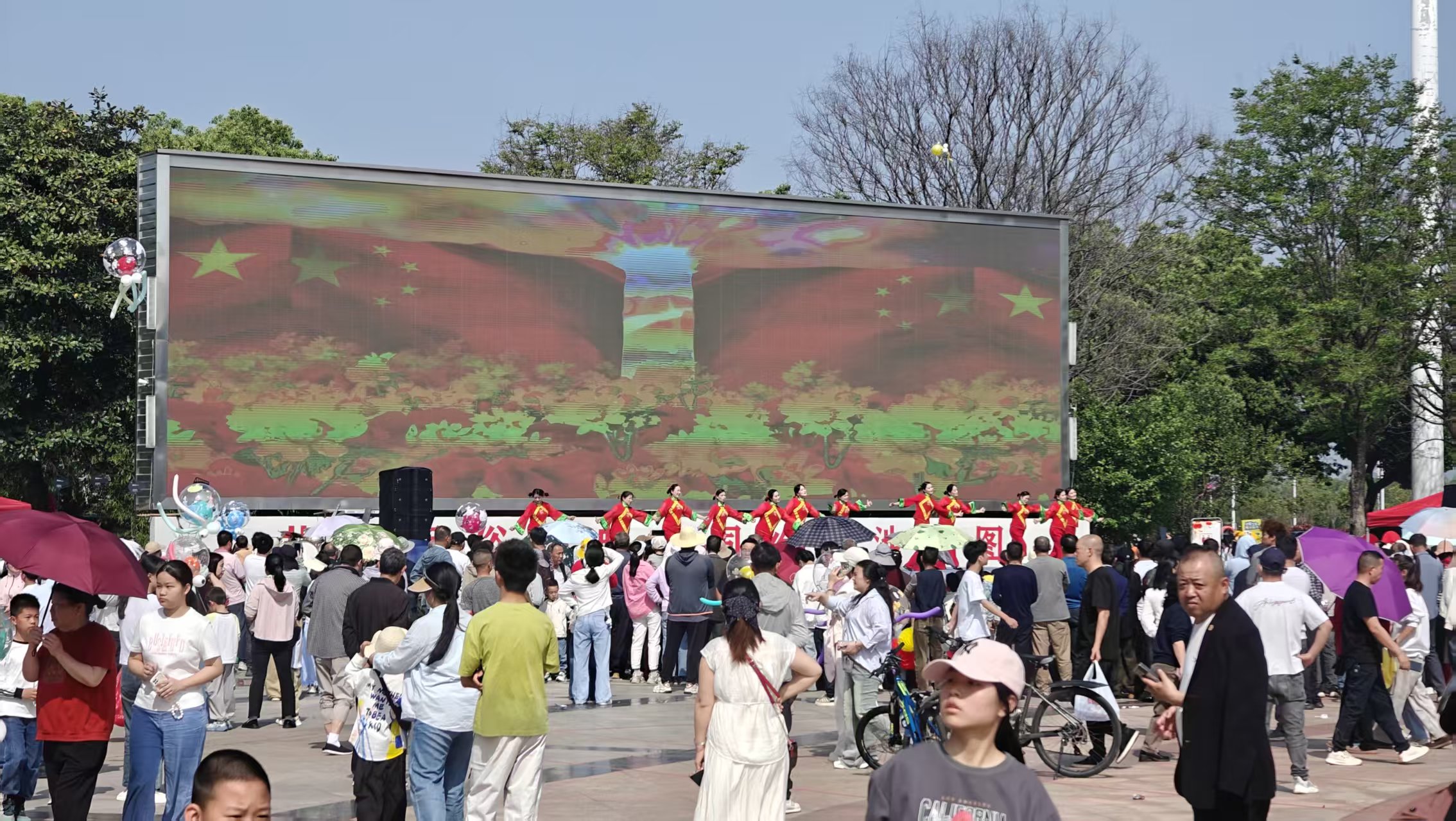 上午11时许,庙会最具看点的“抢彩球”在甘宁公园广场上演。一根十余米高的毛竹顶端系着红、黄、蓝、绿、紫五色彩球——红色寓意平安,黄色象征招财,蓝色代表顺遂,绿色祝愿吉祥,紫色期盼事业有成。随着毛竹轰然倾斜,彩球落入人群,瞬间被争抢一空,欢呼声震耳欲聋。