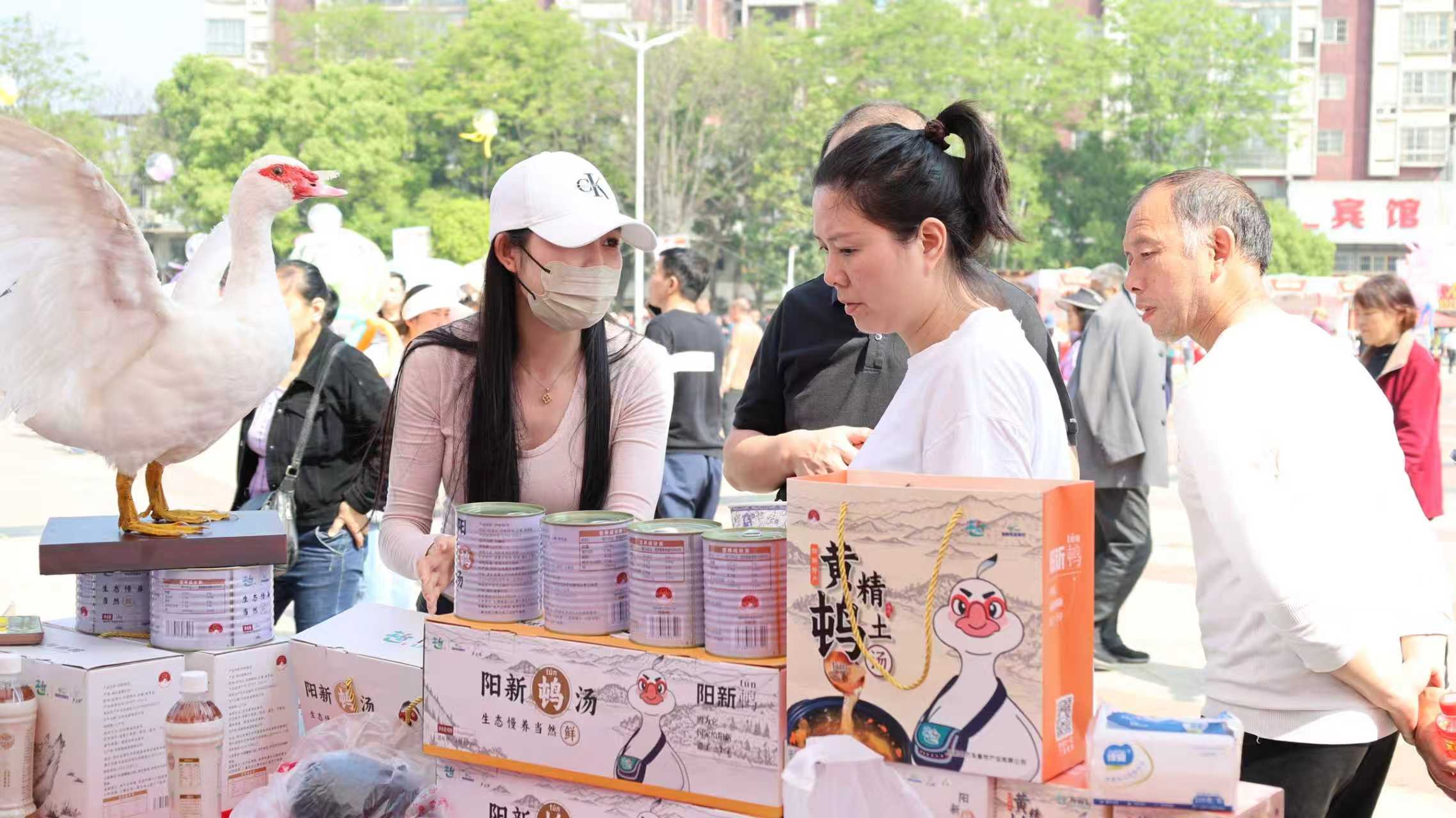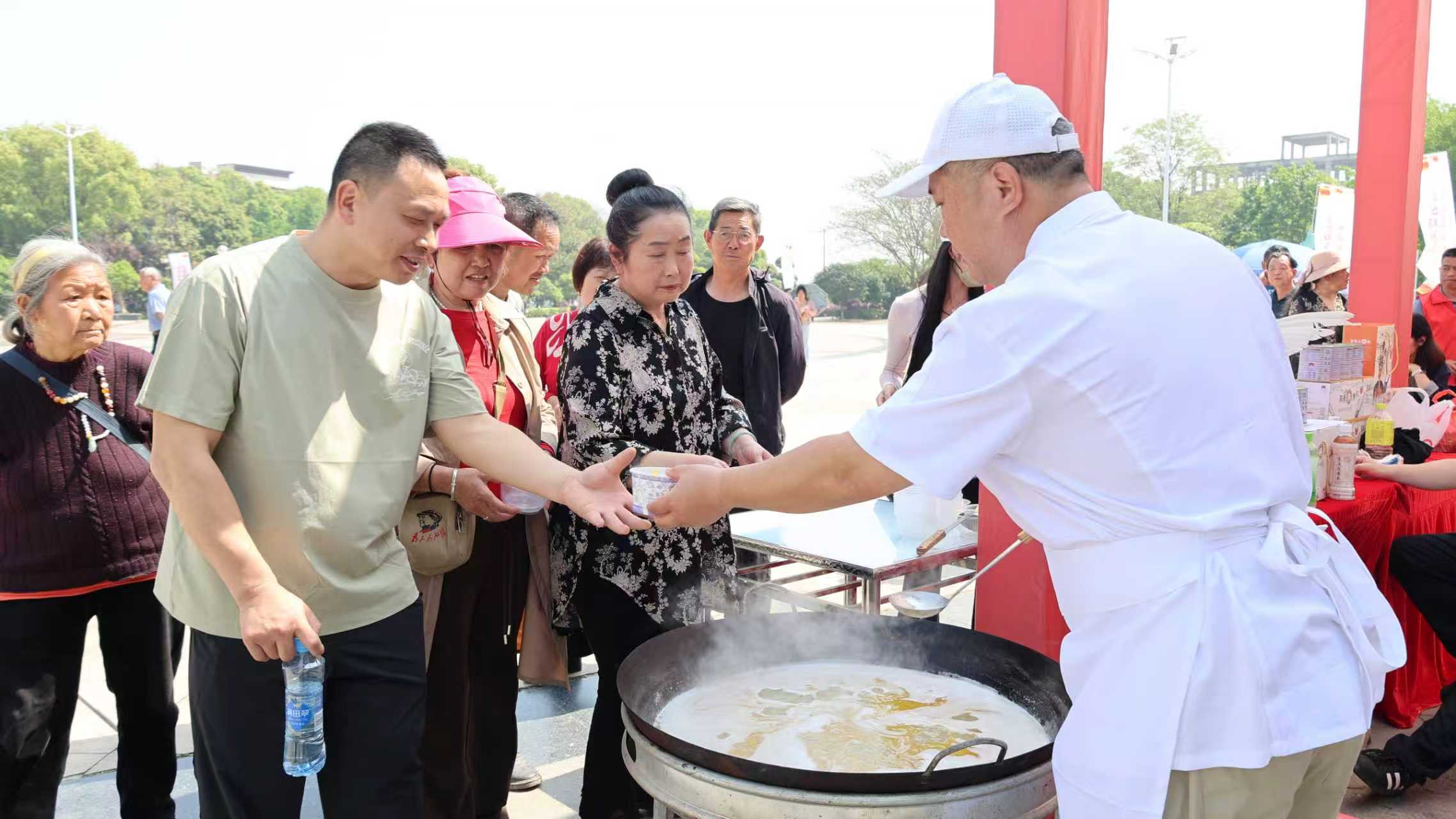 今年首度将“阳新造”名优产品展销与民俗直播带货同步引入节会现场。在富池广场,游客不仅能近距离欣赏国家级非遗阳新布贴的精湛针法、聆听阳新采茶戏的婉转唱腔,还能品尝汤醇味美的阳新屯鸟汤、嫩滑弹牙的富池鱼丸,一饱口福。