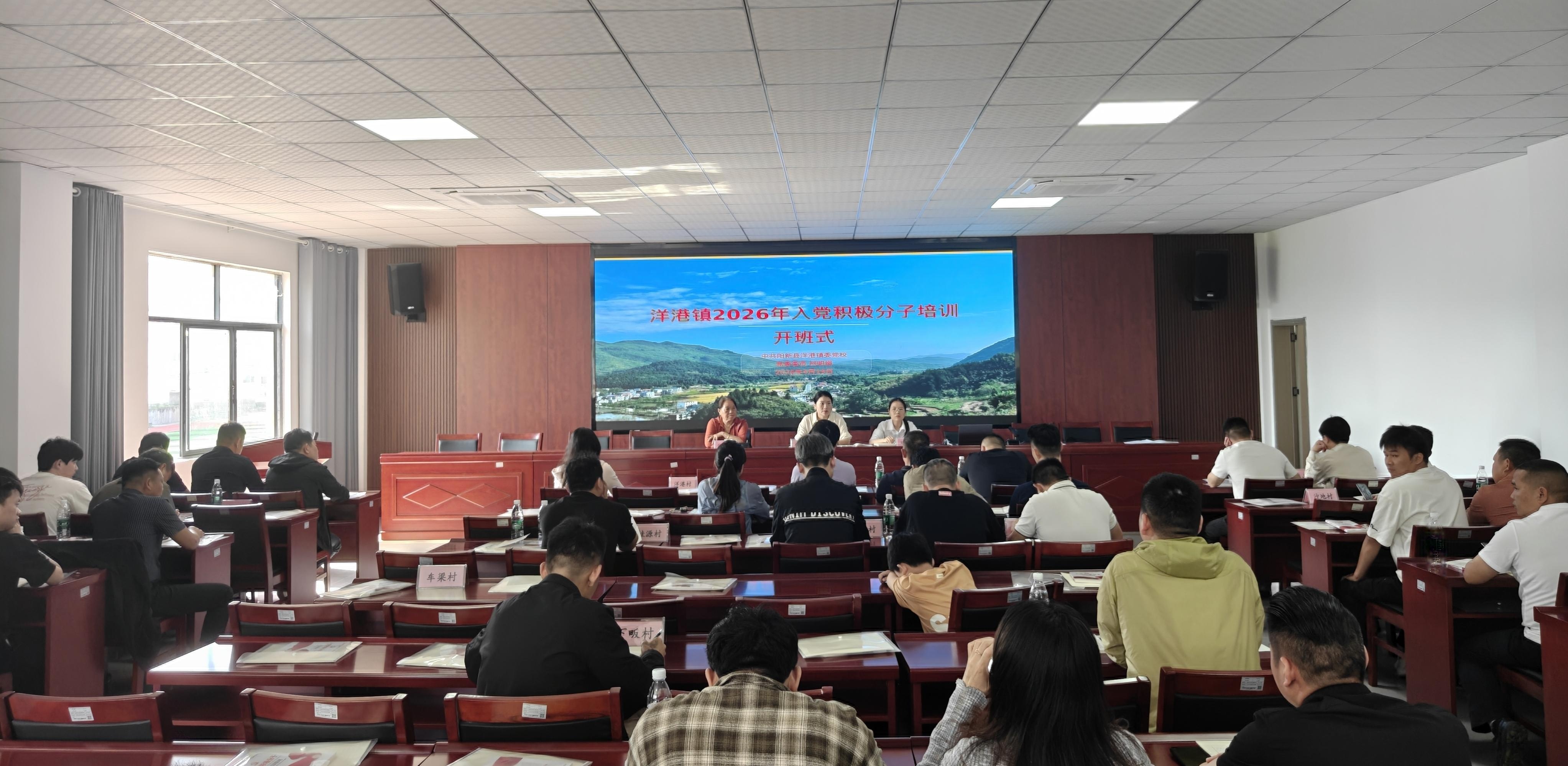 为进一步加强基层党员队伍建设,严把党员“入口关”,夯实乡村振兴骨干力量,4月19日,洋港镇委党校举办2026年入党积极分子培训班。全镇80余名入党积极分子集中参训,通过专题授课、典型宣讲、警示教育与结业考试,接受了一次系统全面的党性淬炼与思想洗礼。