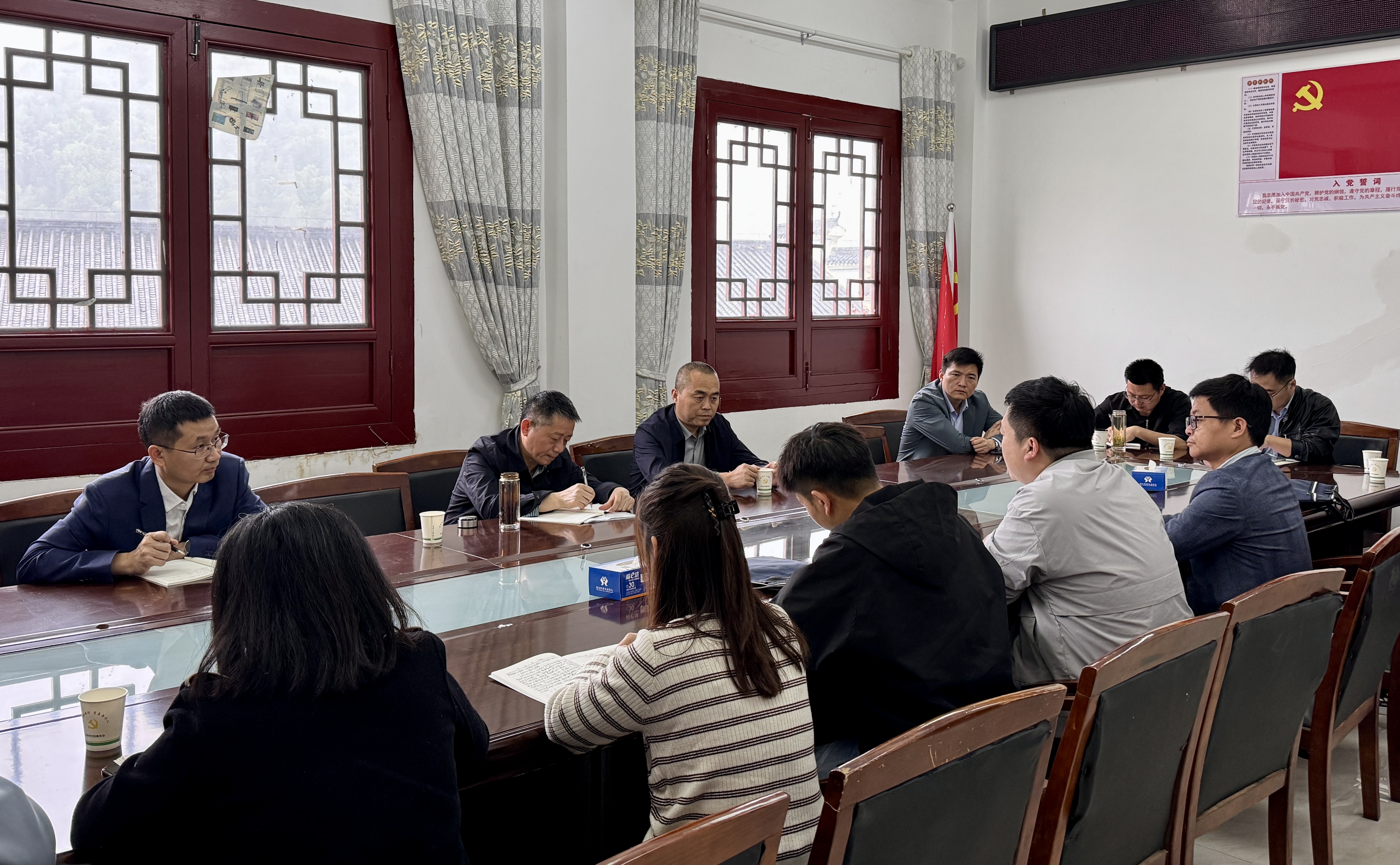 座谈会上,调研组听取了镇、村两级关于项目投入、设施运维等情况汇报,并与镇村干部、经营主体代表、村民代表深入交流,详细了解垃圾分类处理、污水治理、庭院整治及美丽庭院创建等工作推进情况。