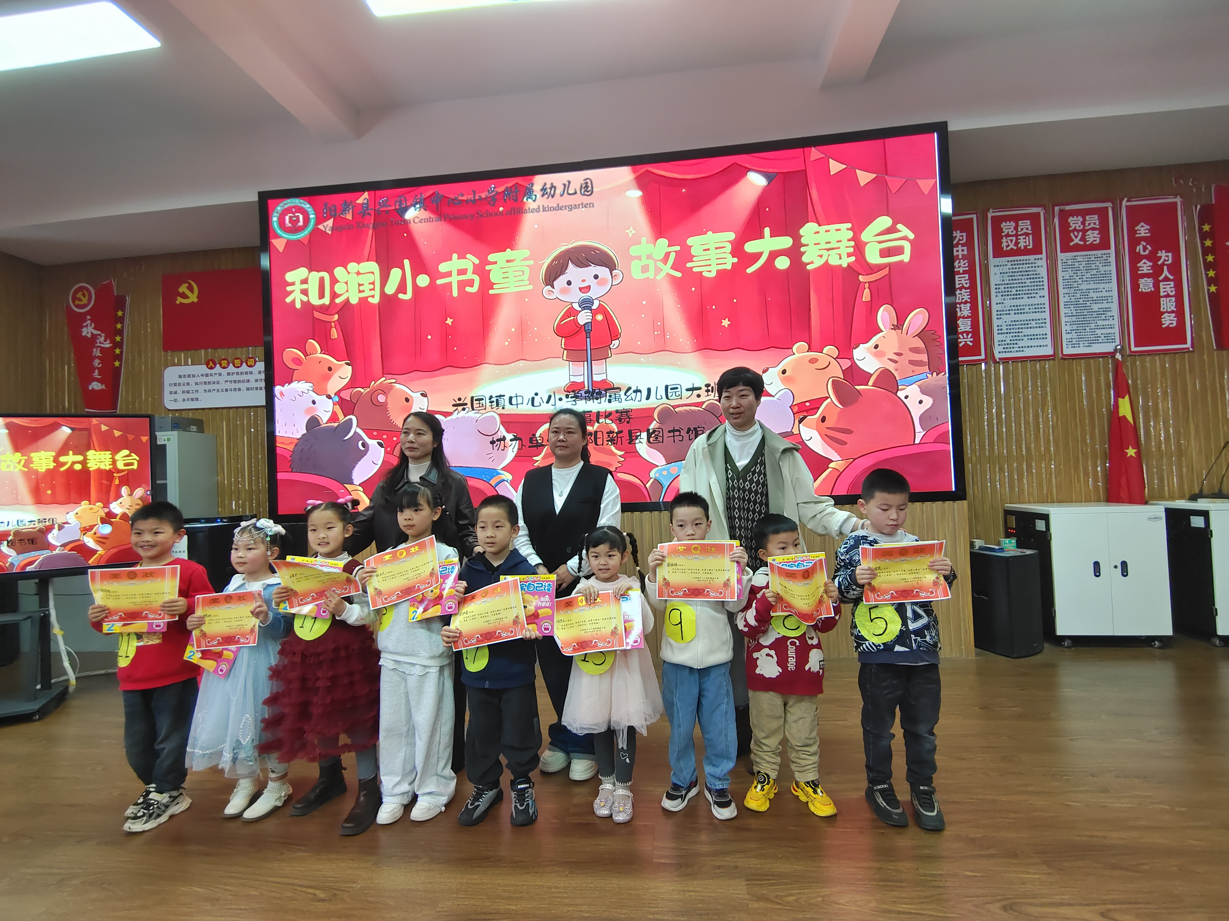 为激发幼儿阅读兴趣,传承中华优秀传统文化,展示新时代儿童自信表达、热爱阅读的精神风貌,4月24日,县图书馆与县中心小学附属幼儿园联合举办的“和润小书童 故事大舞台”故事大王比赛在中心小学报告厅欢乐开启。来自幼儿园大班的26名小选手轮番登台,用童声童语带领现场观众走进奇妙的童话与经典世界。