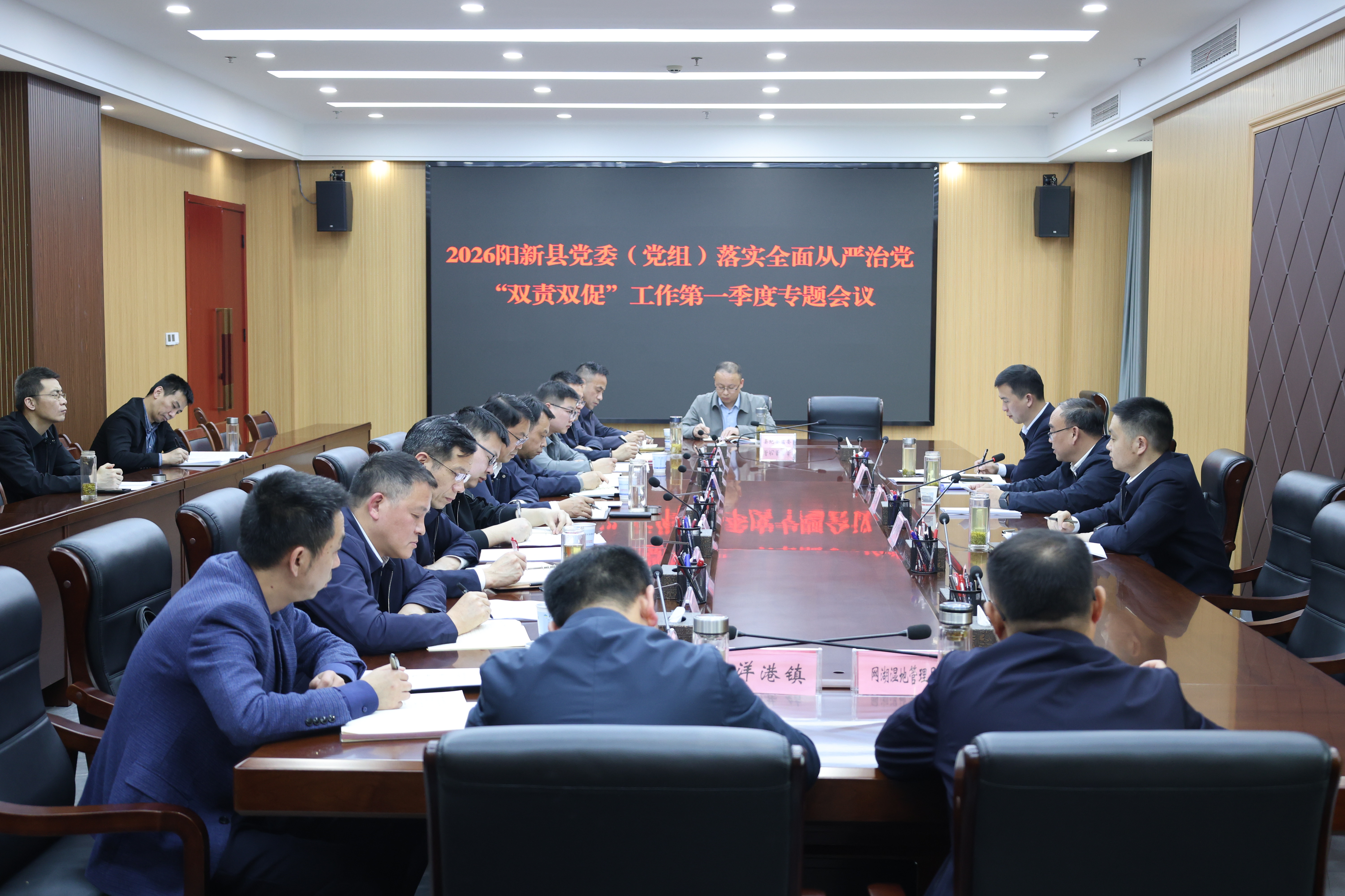 4月24日下午,2026年阳新县党委(党组)落实全面从严治党“双责双促”工作第一季度专题会议在县委党校召开。县委书记杨波主持会议并讲话。县委常委、组织部部长韩顺东,县委常委、县纪委书记郑鹏鲲出席会议。