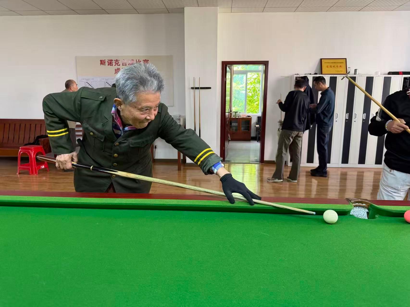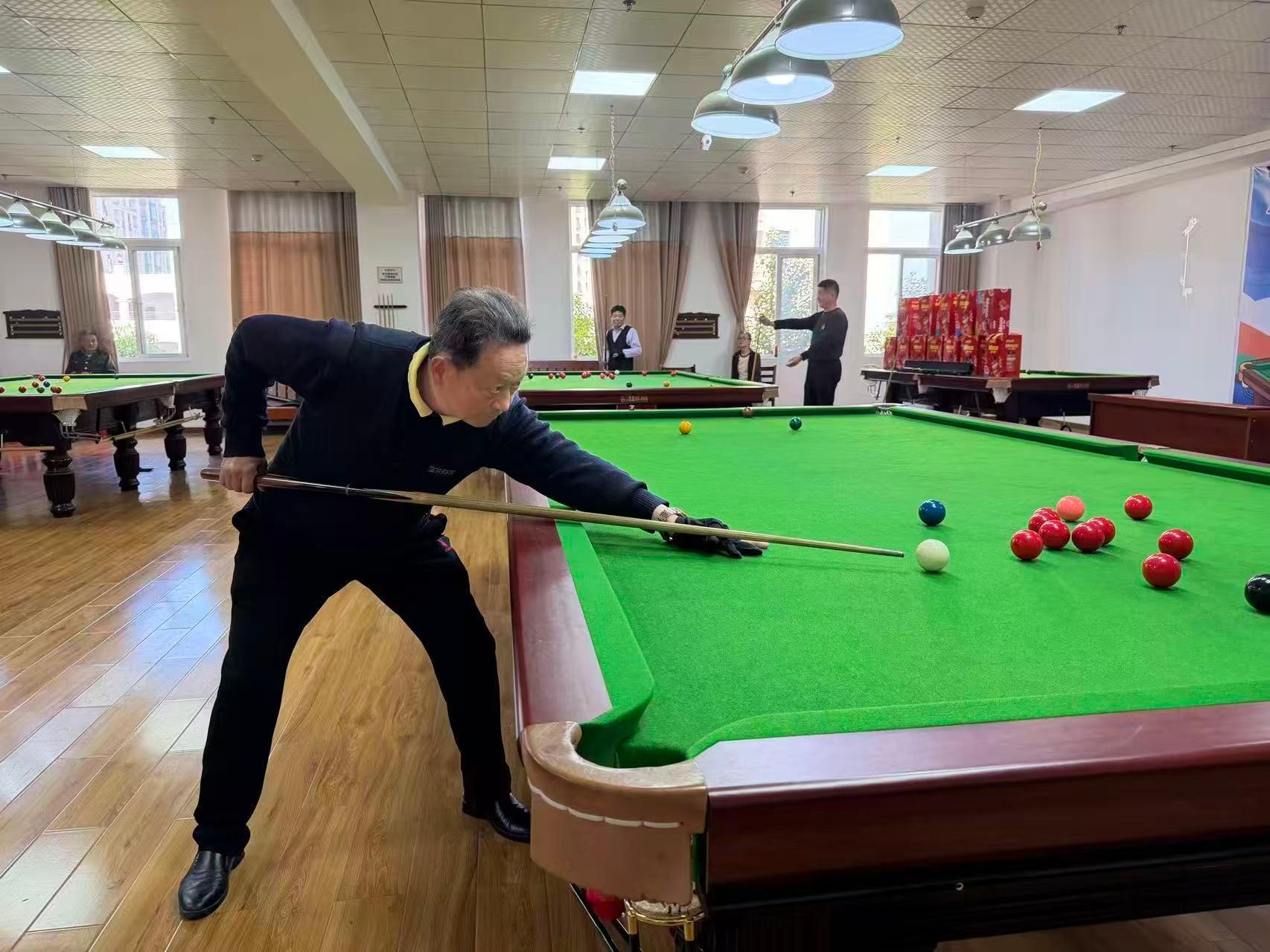 赛场年龄最大的参赛者为80岁高龄的祝进,他精神矍铄、专注投入,以饱满热情参与全程比拼,用行动诠释对台球运动的执着热爱,展现出 “老有所乐、老有所为” 的积极风采,成为赛场一道温暖而亮眼的风景。