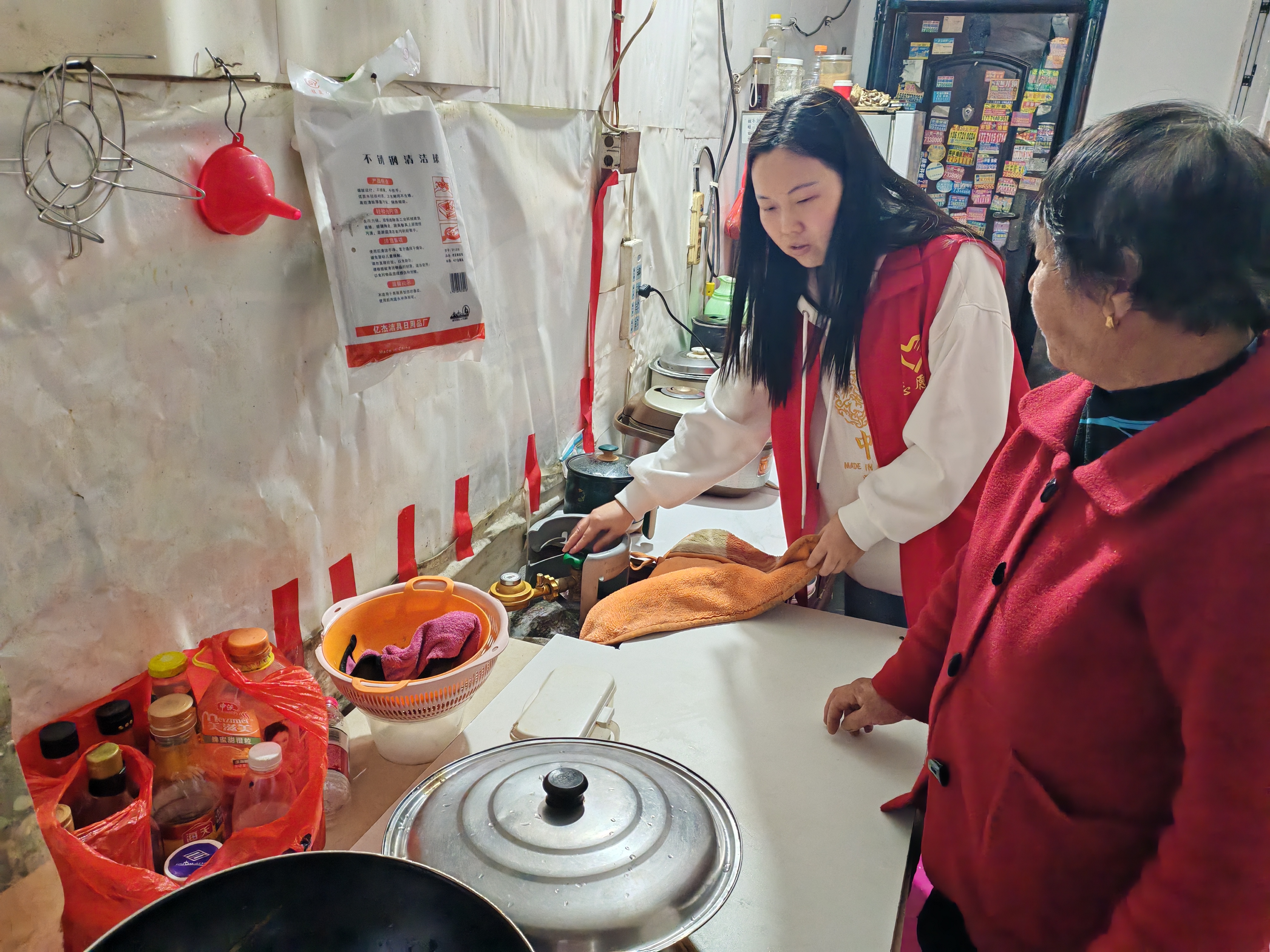 “王奶奶,认证已经办好了,我看您家的煤气软管有点老化,这存在安全风险,我马上帮您联系人更换。”在独居老人王奶奶家中,志愿者小柯完成养老认证后,细心发现安全隐患并第一时间着手处置。这样的暖心场景,如今在火车站社区已成为常态,志愿者们用点滴行动为老人筑牢安全防线、传递社区暖心力量。