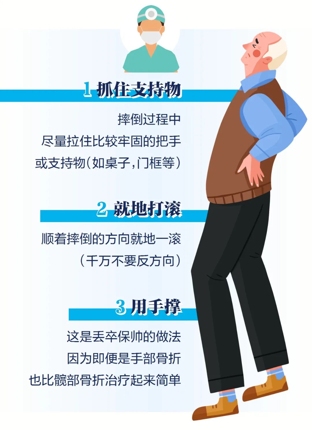 李烨告诉“涨健识”,以下三步曲可以减少摔倒的伤害: