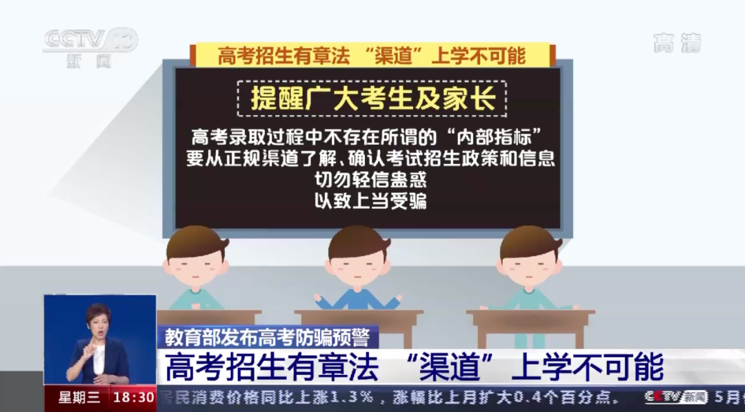 教育部提醒,高校招生录取有严格的工作流程。高校招生计划由省级招生考试机构统一向社会公布,高考录取过程中不存在所谓的“内部指标”。