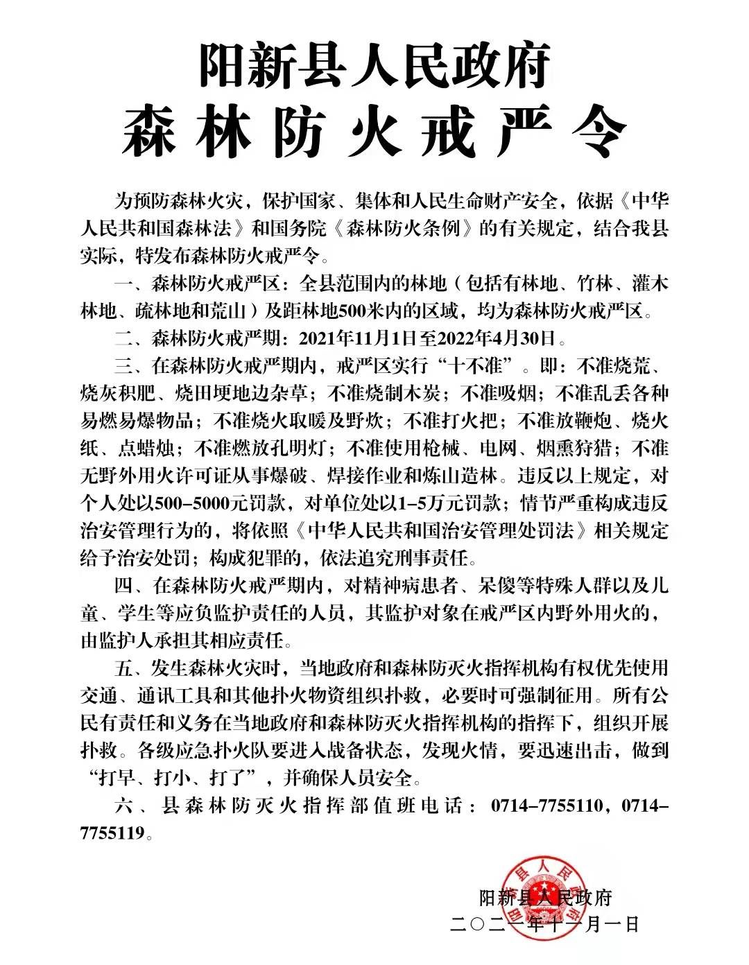 注意 | 阳新进入森林防火期 野外随意用火将面临重罚