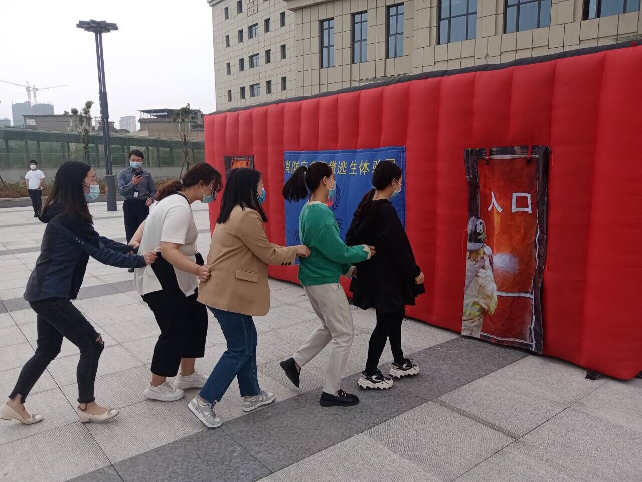 县中医医院开展“防火减灾”逃生屋体验暨消防灭火演练活动